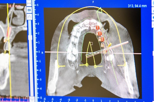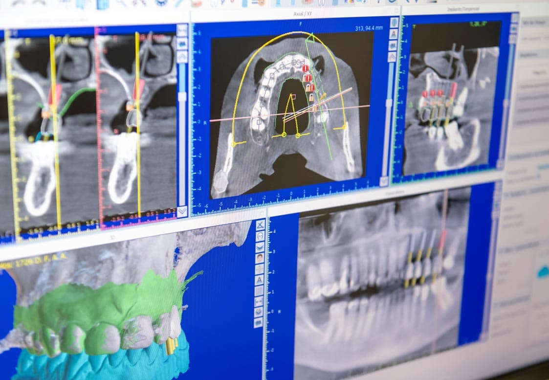 Estos casos requieren una planificación detallada, por lo que en Sorrisos, utilizamos cirugía guiada por ordenador y TAC, pudiendo colocar los implantes de manera correcta para garantizar la rehabilitación protética que sustituirá los dientes perdidos.